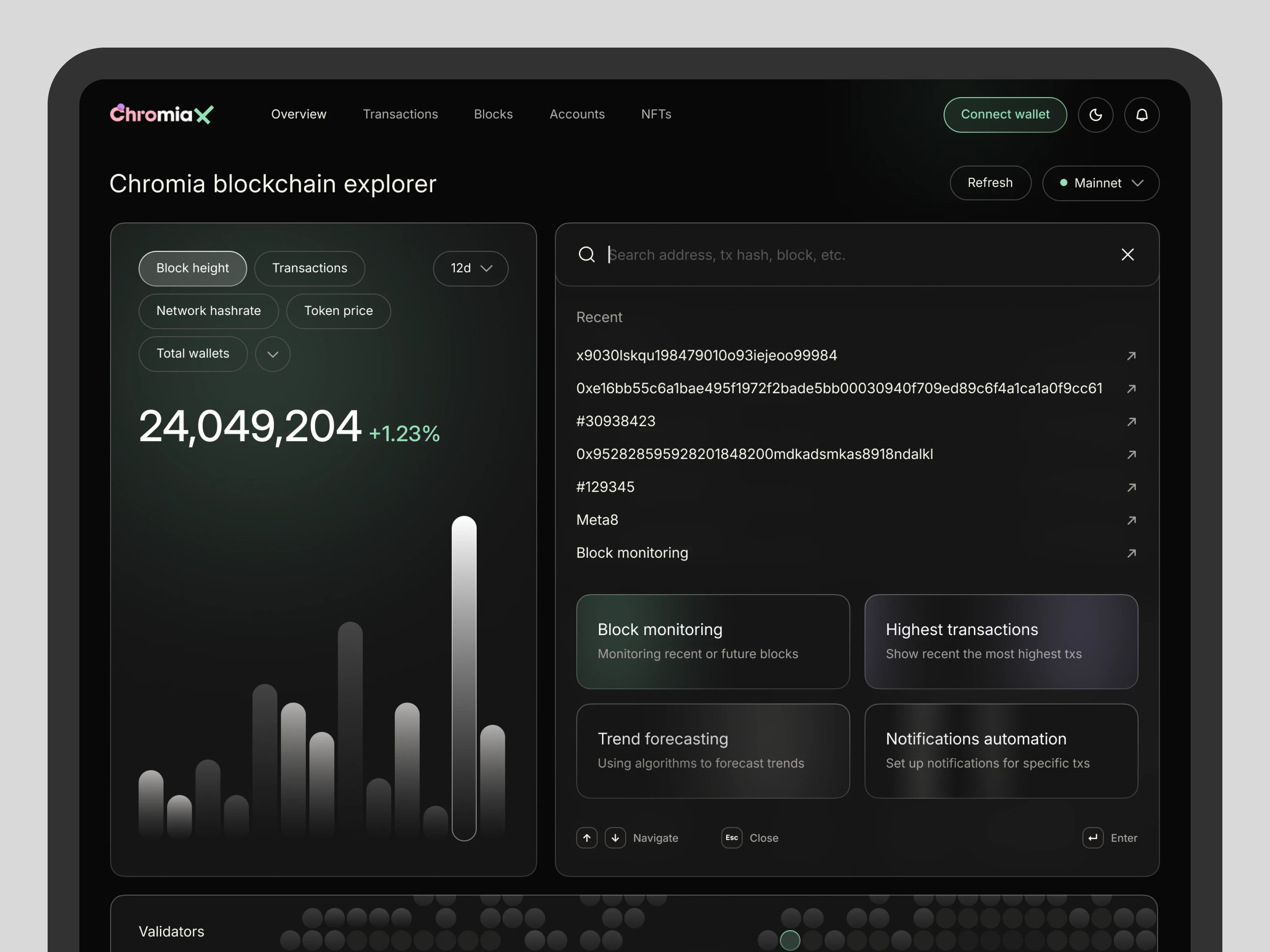 Explorer is the primary entry point for exploring network activity - transactions, blocks, accounts dapp-related data.