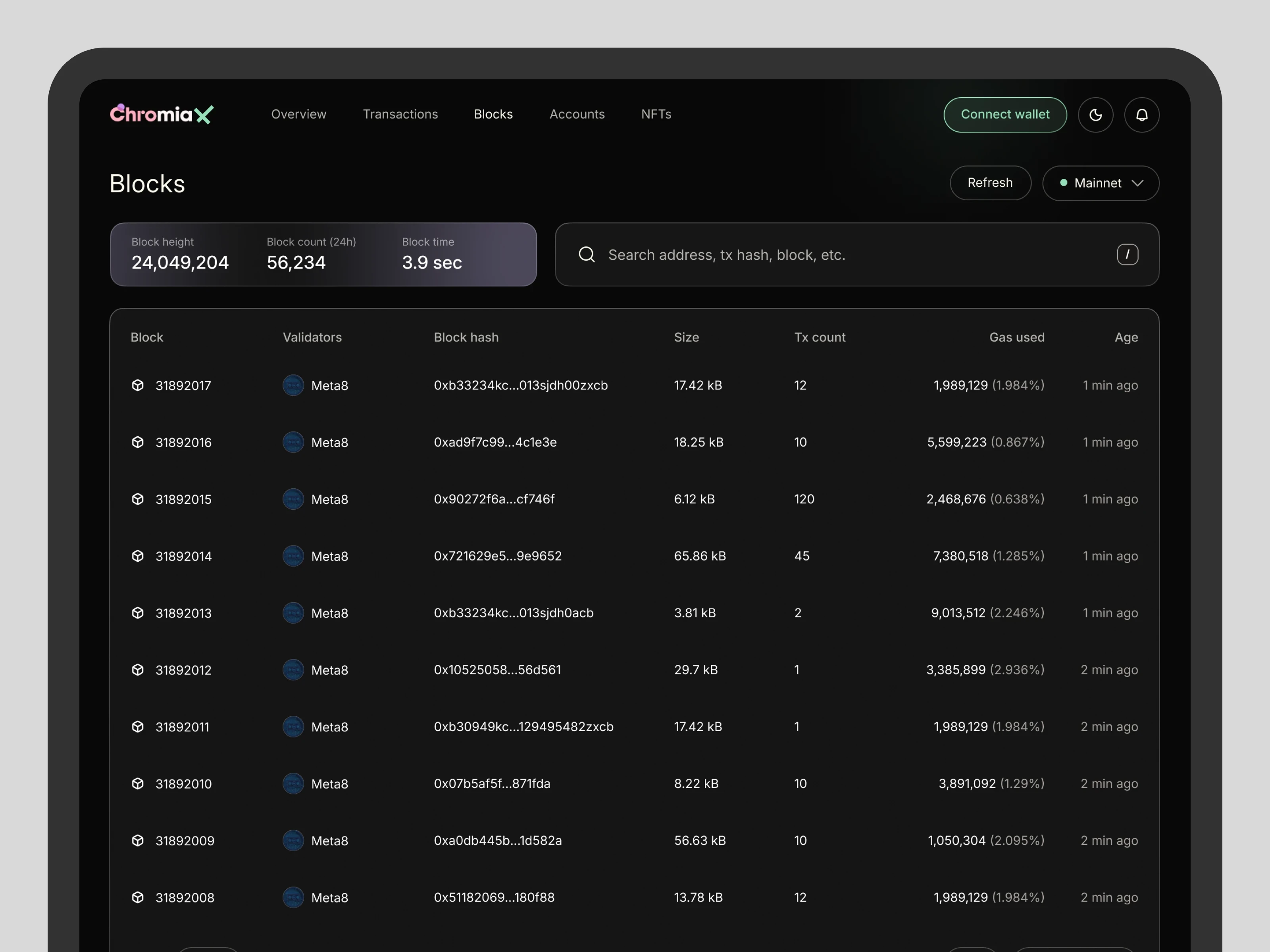 Delivered a clearer and more navigable explorer experience with improved readability and stronger information hierarchy, enabling users to locate and verify network activity faster and with more confidence.