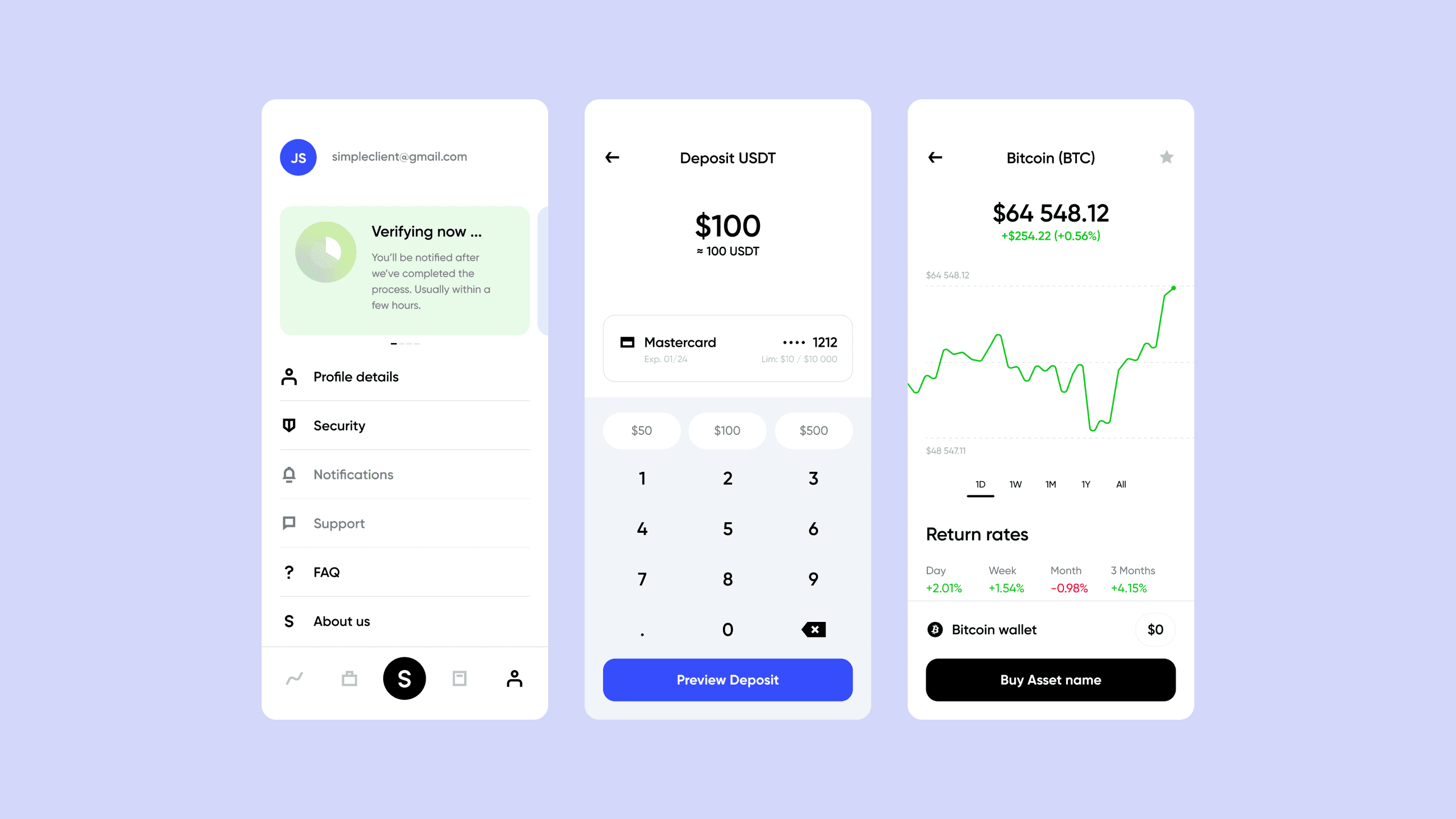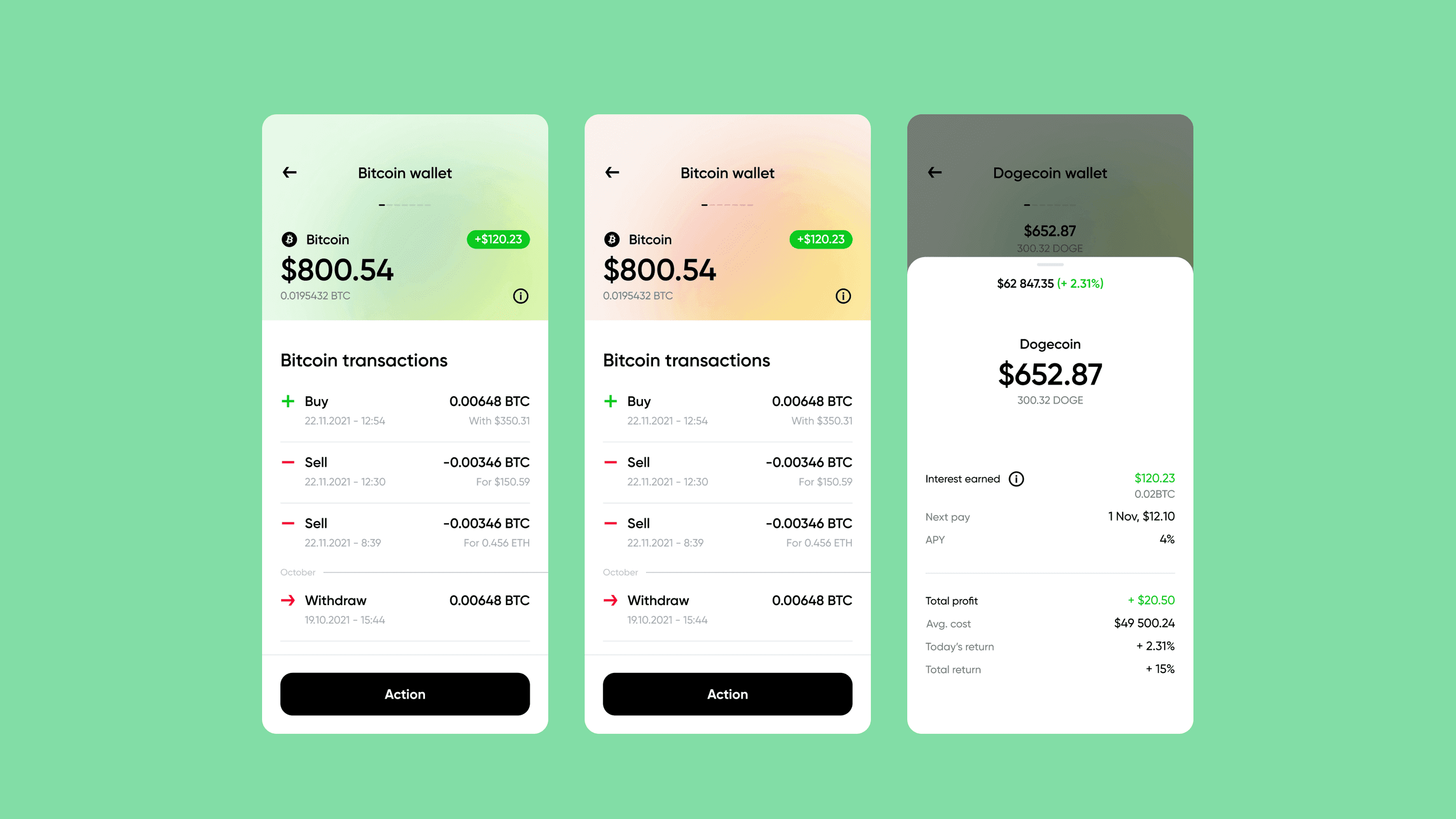 The result is a clean, modern interface with bright, consistent highlights that strengthens usability and reduces cognitive load. Clear hierarchy, readable typography, and guided interactions minimize confusion and support intuitive crypto financial management for both beginners and experienced investors.