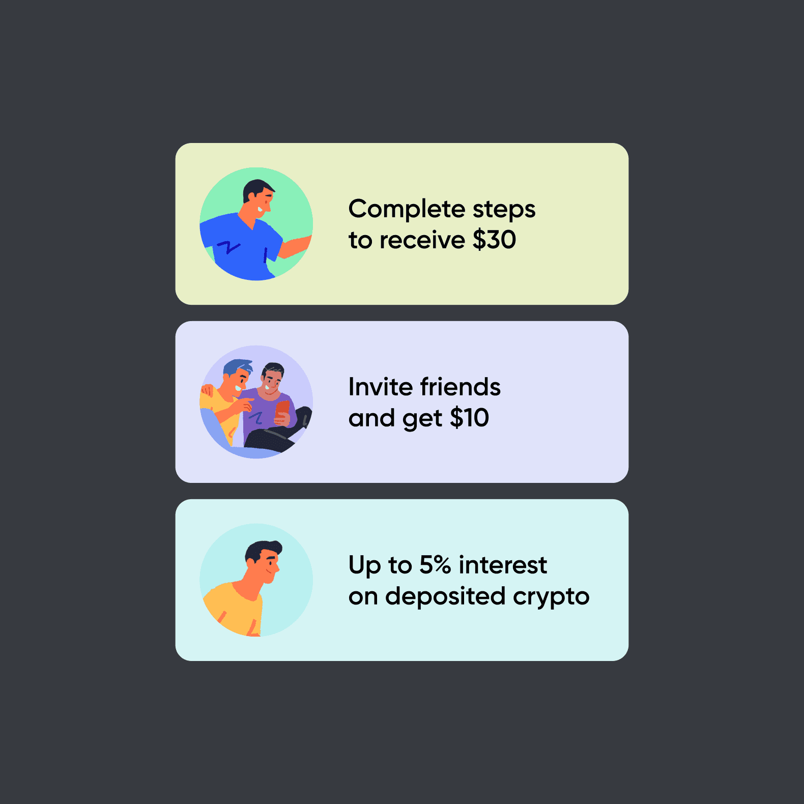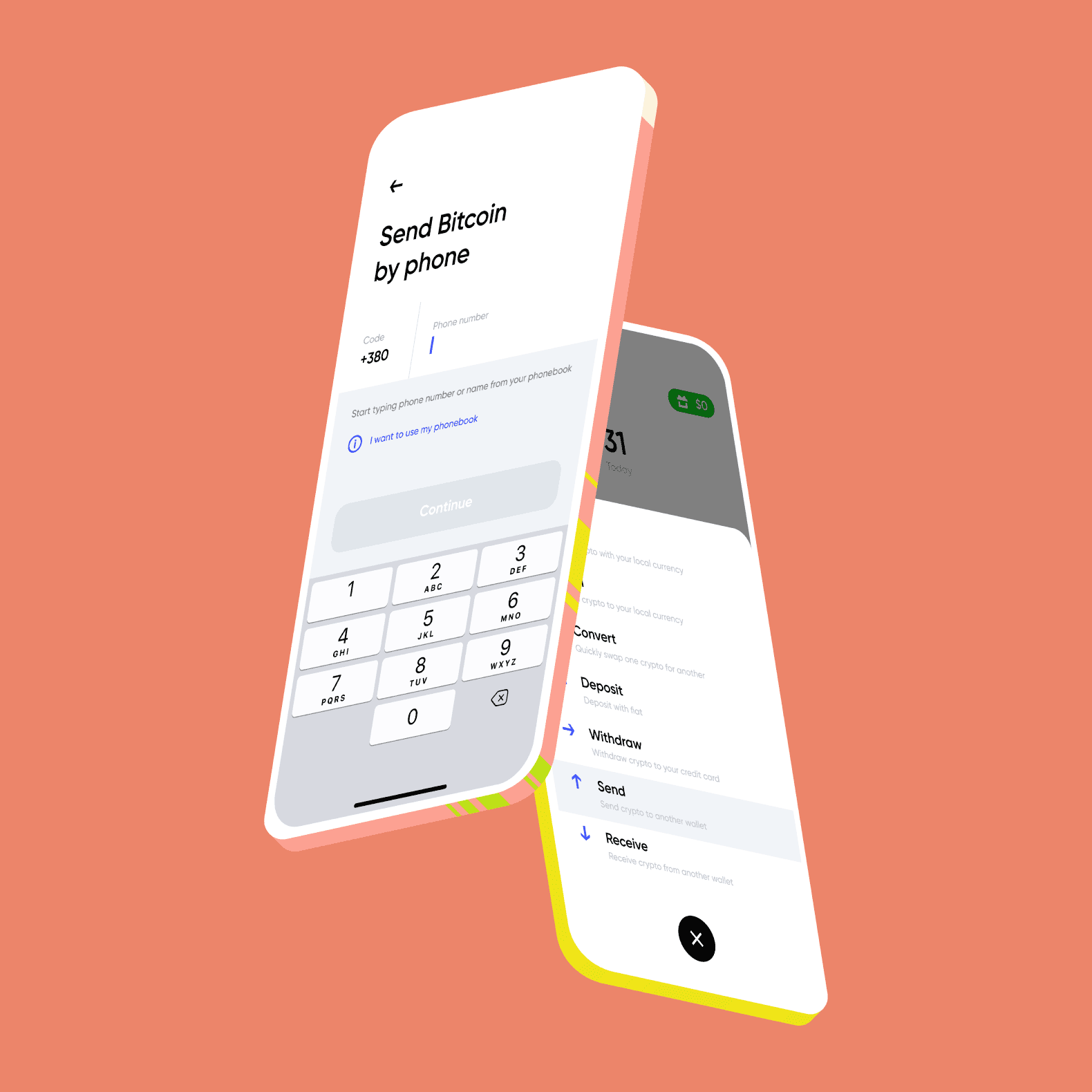 I used vibrant accent colors and purposeful illustrations to add warmth and clarity to a regulated crypto wallet experience. These visual cues create emotional engagement while improving comprehension - helping users quickly understand actions, statuses, and next steps without relying on heavy text.